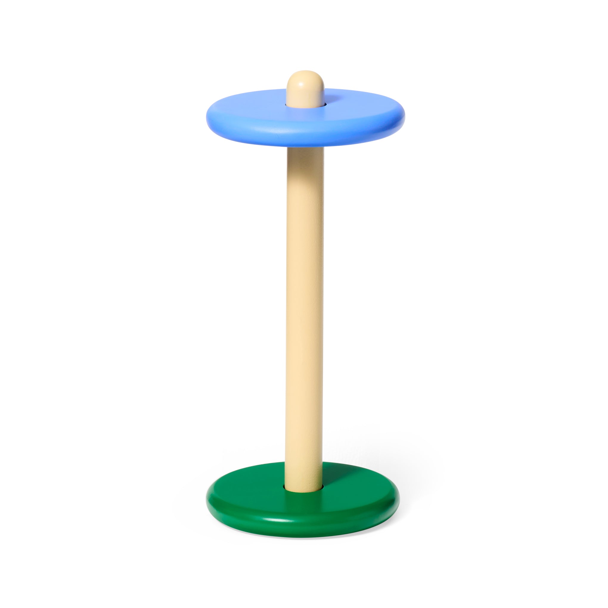 Keep your paper towel rolls neat. close at hand and attractively displayed with this Spool Holder from Areaware. Composed of painted beech wood. the design has a cream-colored central spool with two. colored disc-shaped ends. The holder stands upright on your counter on the colored disc. The Areaware Spool Paper Towel Holder measures 13.7h x 6diam. Paper towels not included.