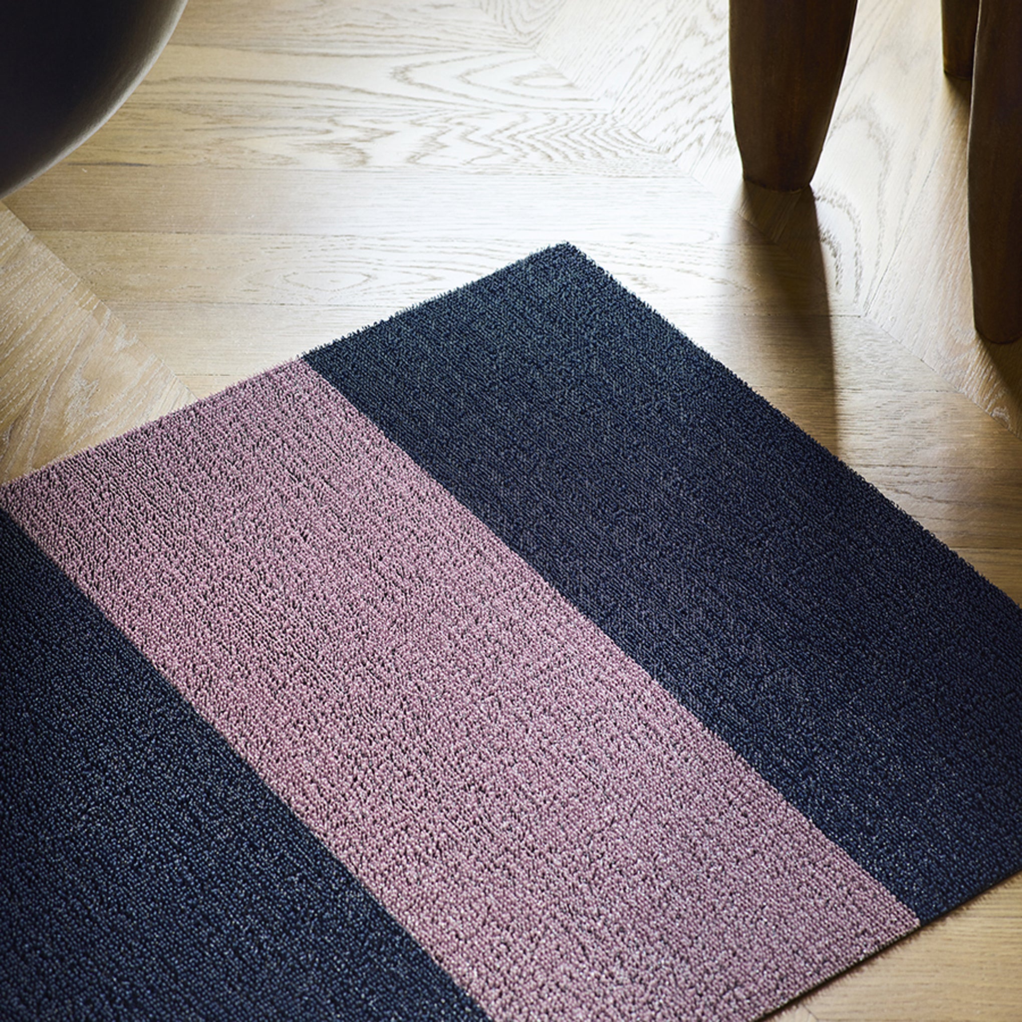 A beautiful and functional design for indoors or outdoors. this Chilewich Duo Stripe Shag Mat is made by tufting custom extruded yarns as loops onto a primary backing and then binding them onto a hardworking vinyl. This meticulous construction means they can weather any storm outdoors and provide functionality underfoot indoors. Shag Mats are ideal for bathrooms. outdoor terraces. pool area. and entryways. Good in all weather. Quick to dry. Resistant to mold. mildew. and chlorine. The Chilewich Duo Stripe Shag Mat in the USA for the brand’s famous polyester and vinyl TerraStrand? and Microban? which is free of phthalates.
