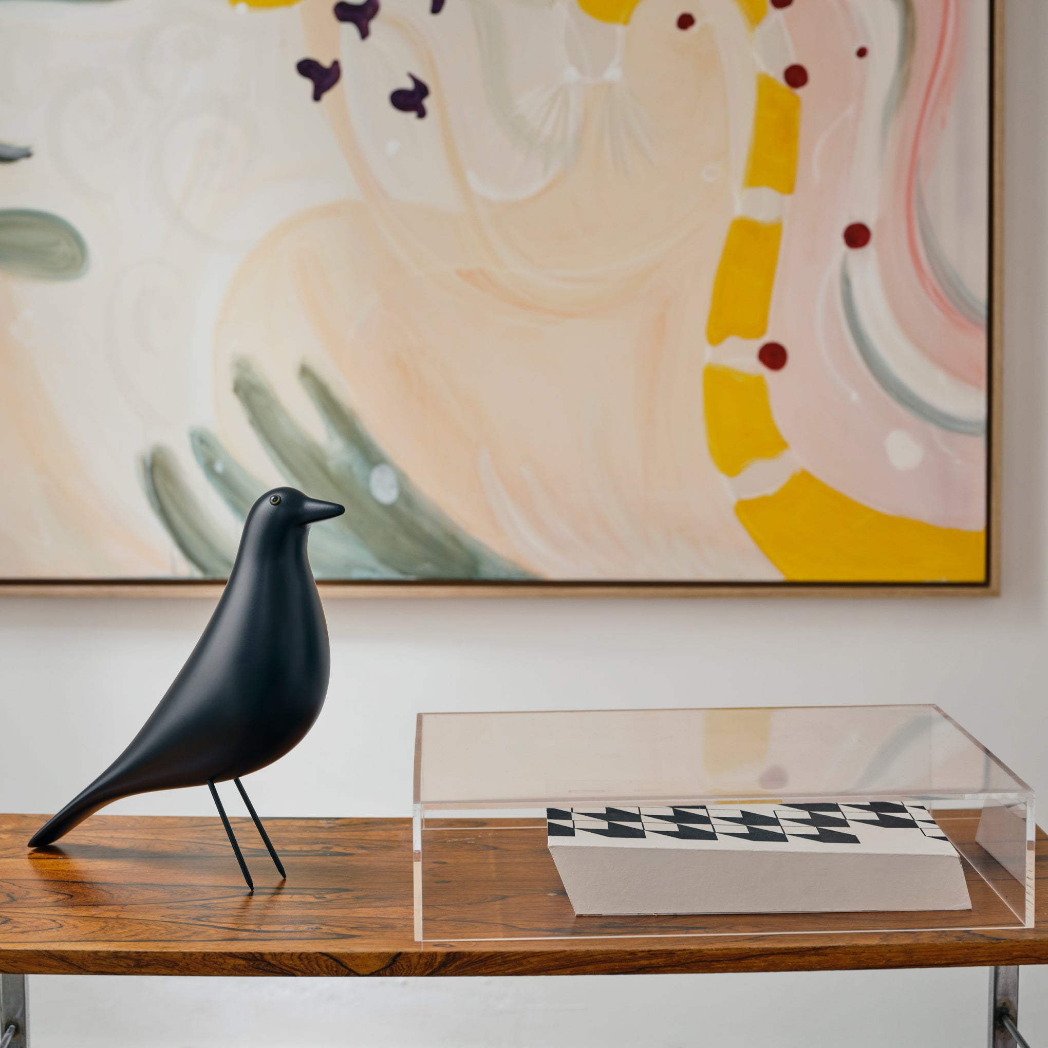 As lifetime travelers. Charles and Ray Eames delighted in returning home laden with various accessories and objets d’art. using them to furnish and decorate The Eames House. their private home. The Eames House Bird is based on the black bird figure that stood in their living room for over 50 years. Originally procured as an exemplar of Appalachian folk art from the mountains in the eastern US. the Eames House Bird made cameo appearances in many of the Eames’ photographs and was highly prized by the couple.