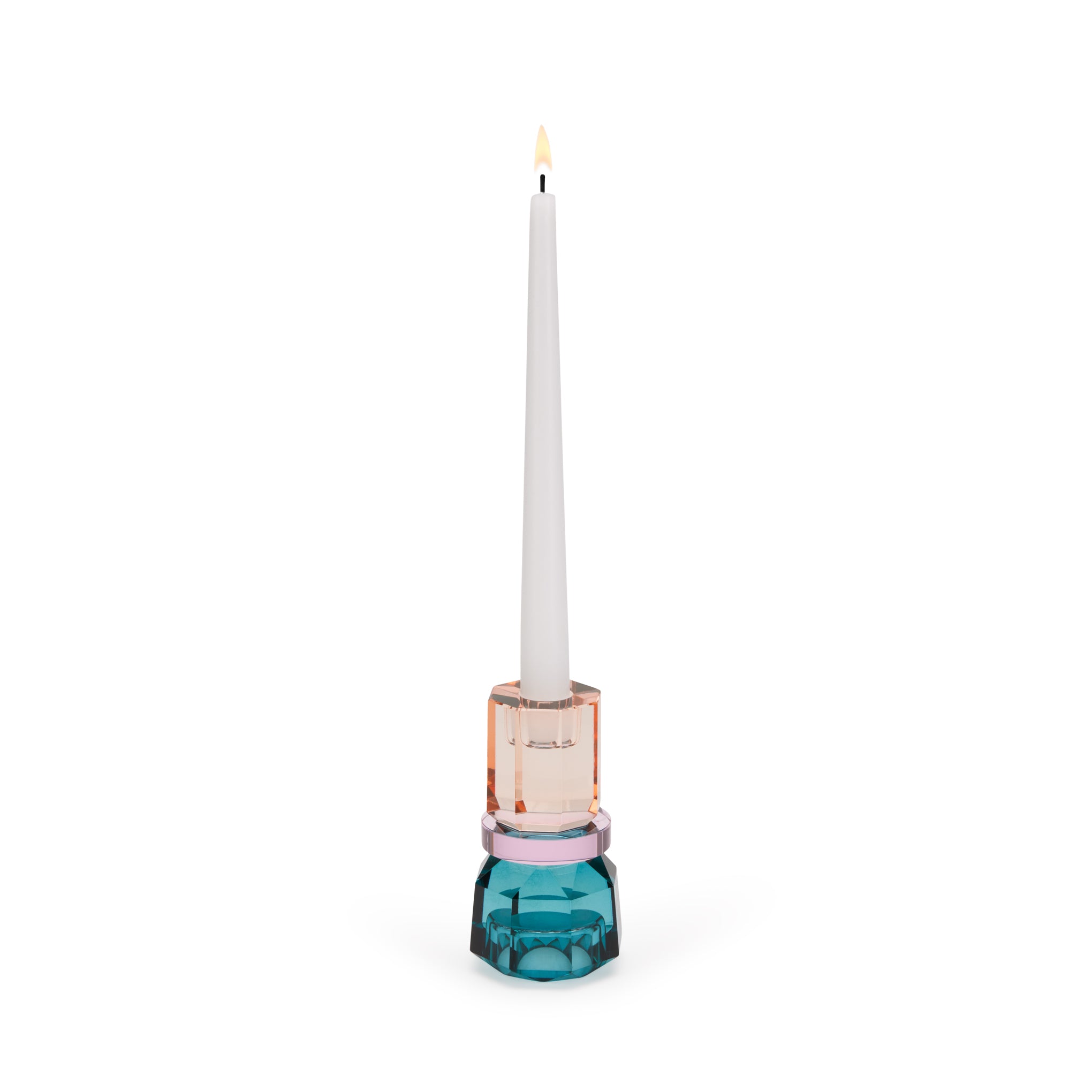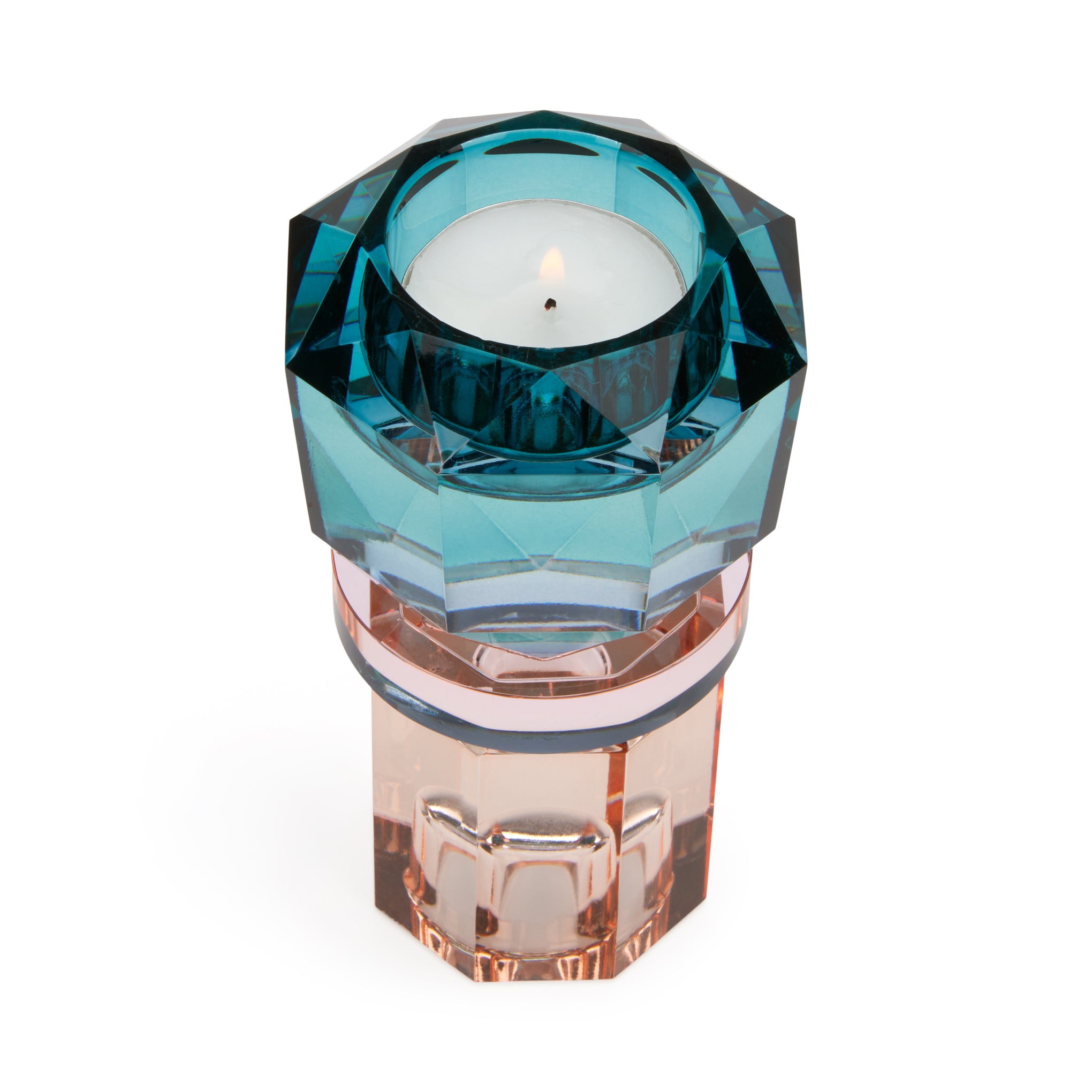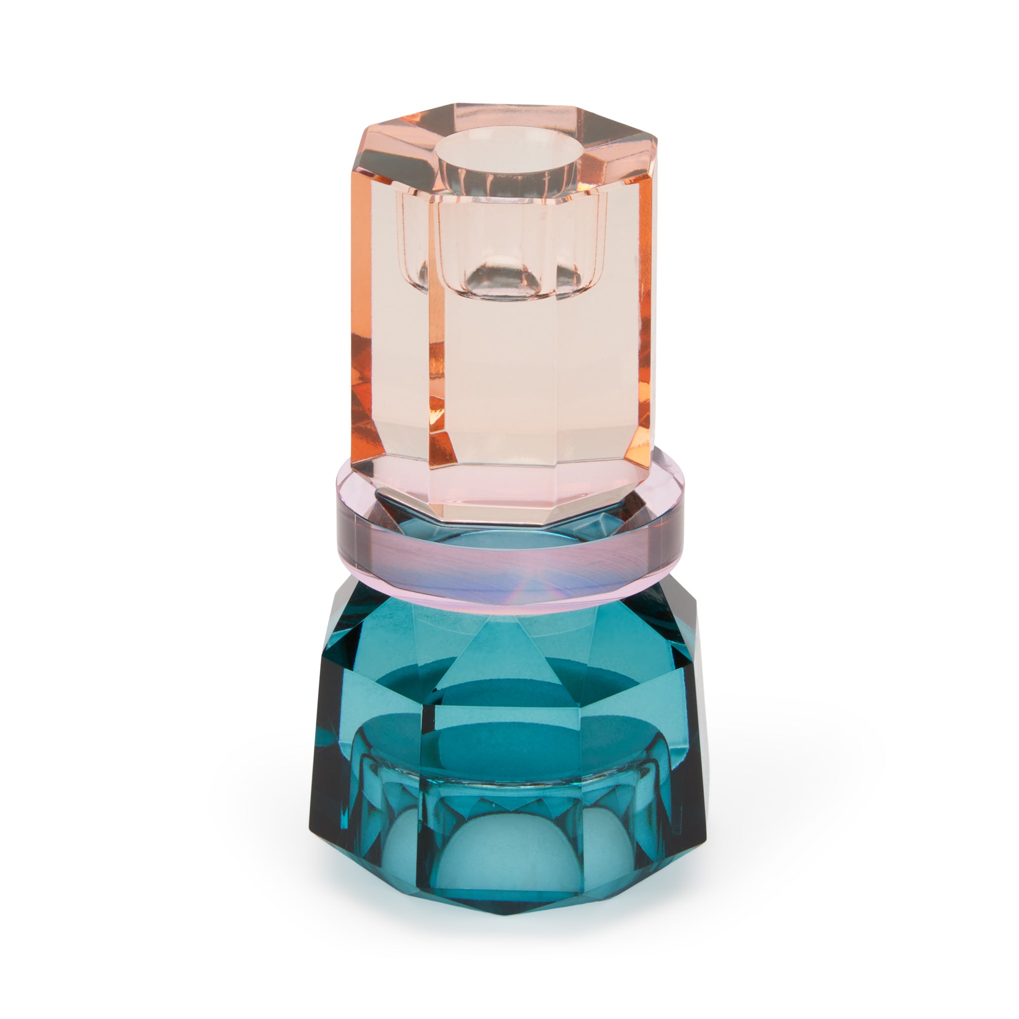 Faceted Crystal Candle Holder – Petrol/ Pink/ Peach