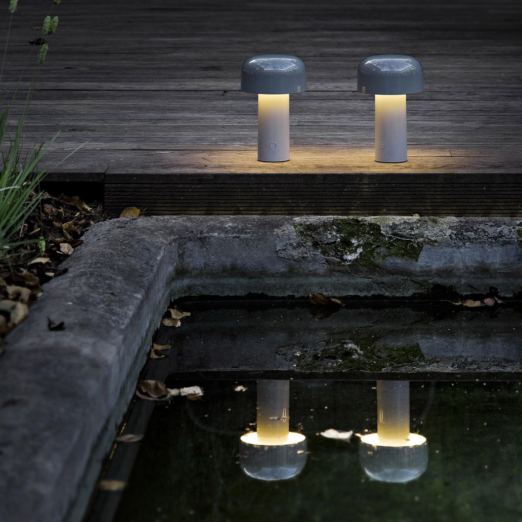 This portable. wireless lamp can be carried from room to room like a high-tech candle. providing light where you need it. An Italian-made design by Edward Barber and Jay Osgerby. the Bellhop Lamp casts a pool of direct light. and has a mushroom shape that shields its carrier from interfering rays while walking through dark rooms. The Bellhop Lamp has a four-step dimmer. operated by a push-button switch at its base. and charges via micro USB-C to provide four hours of light. Designed by Edward Barber and Jay Osgerby for FLOS.
