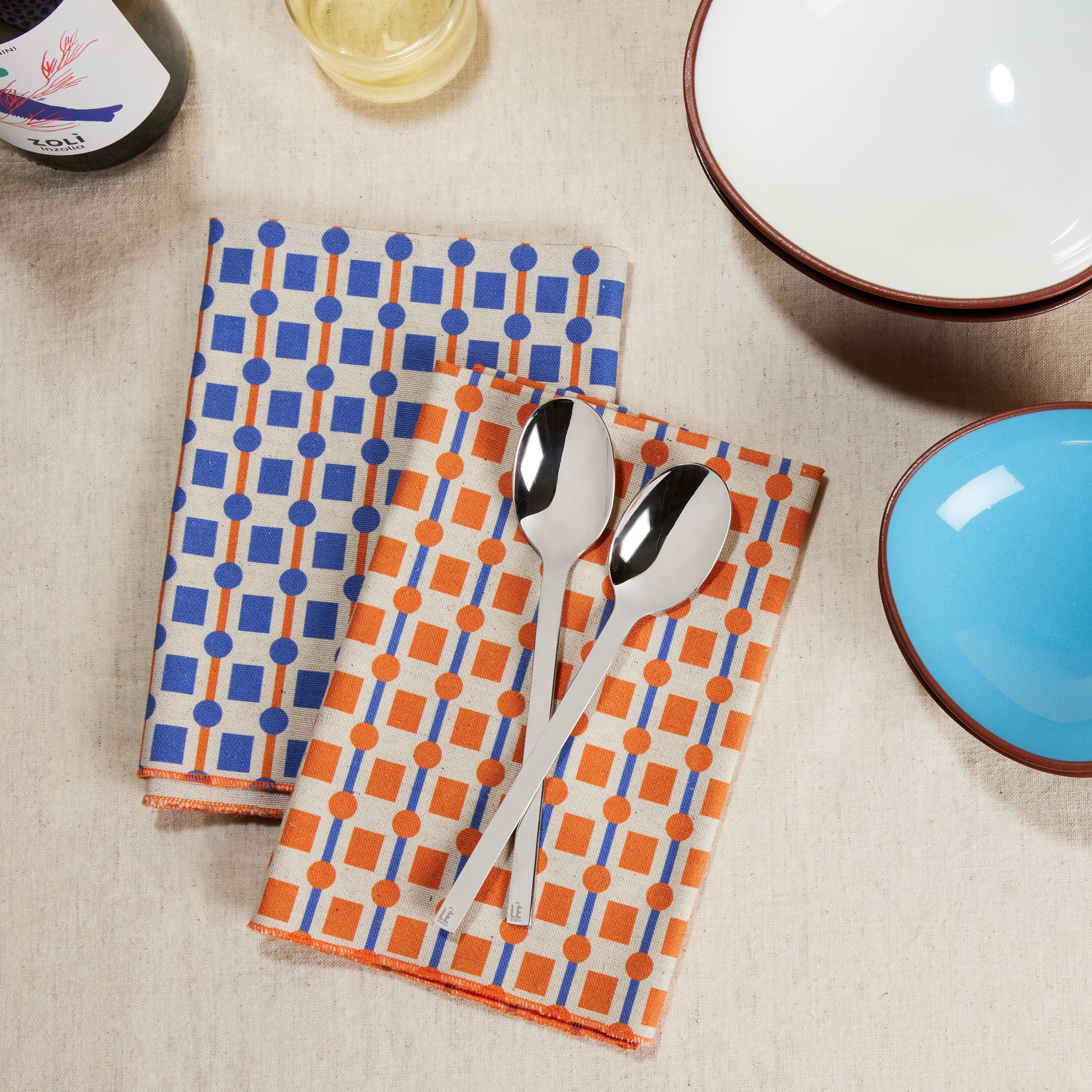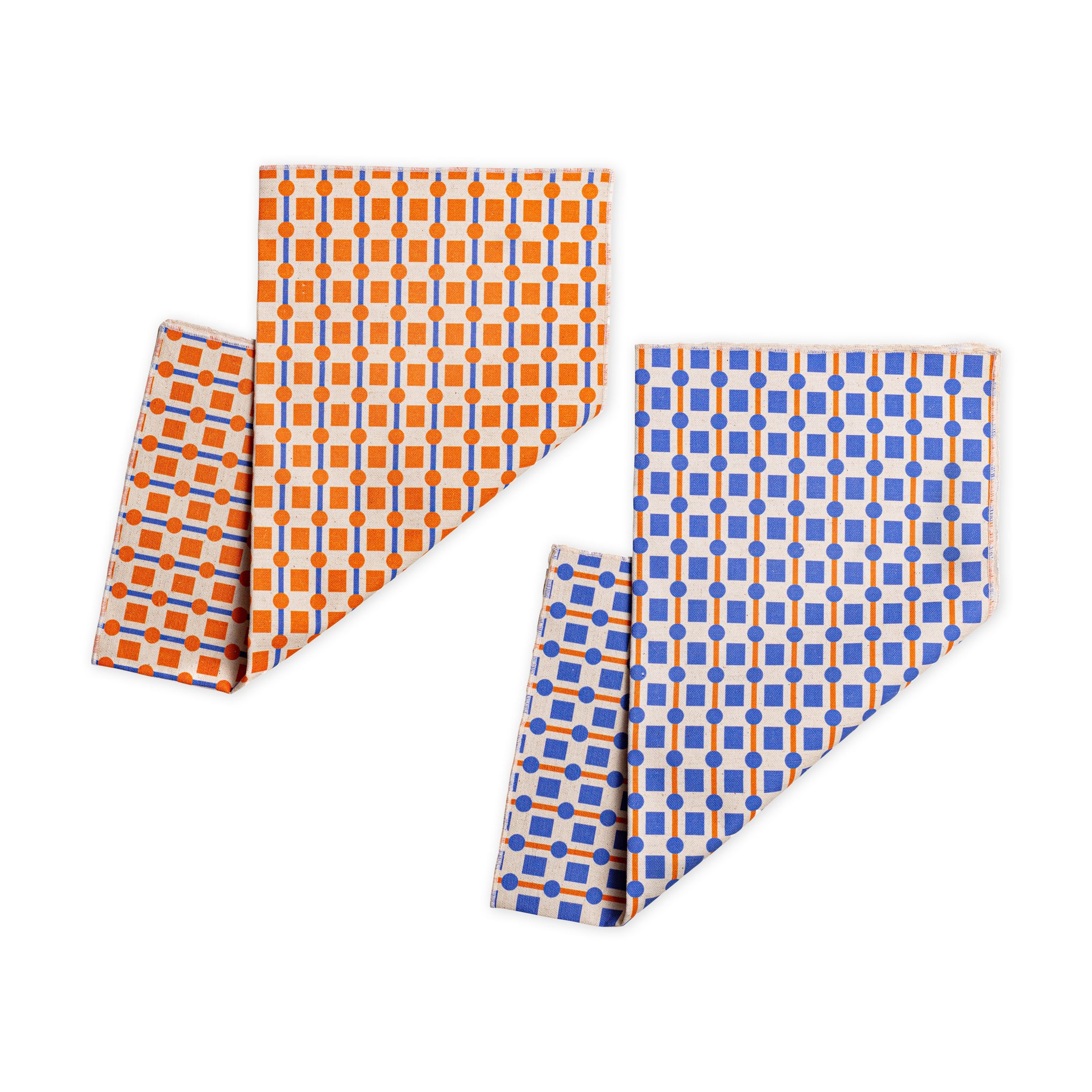 Geometric Cotton & Linen Napkins – Set of 2 – Orange/ Blue