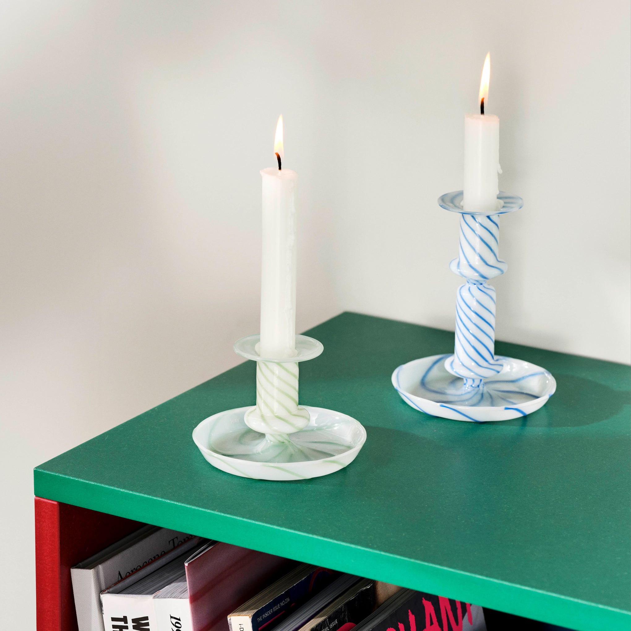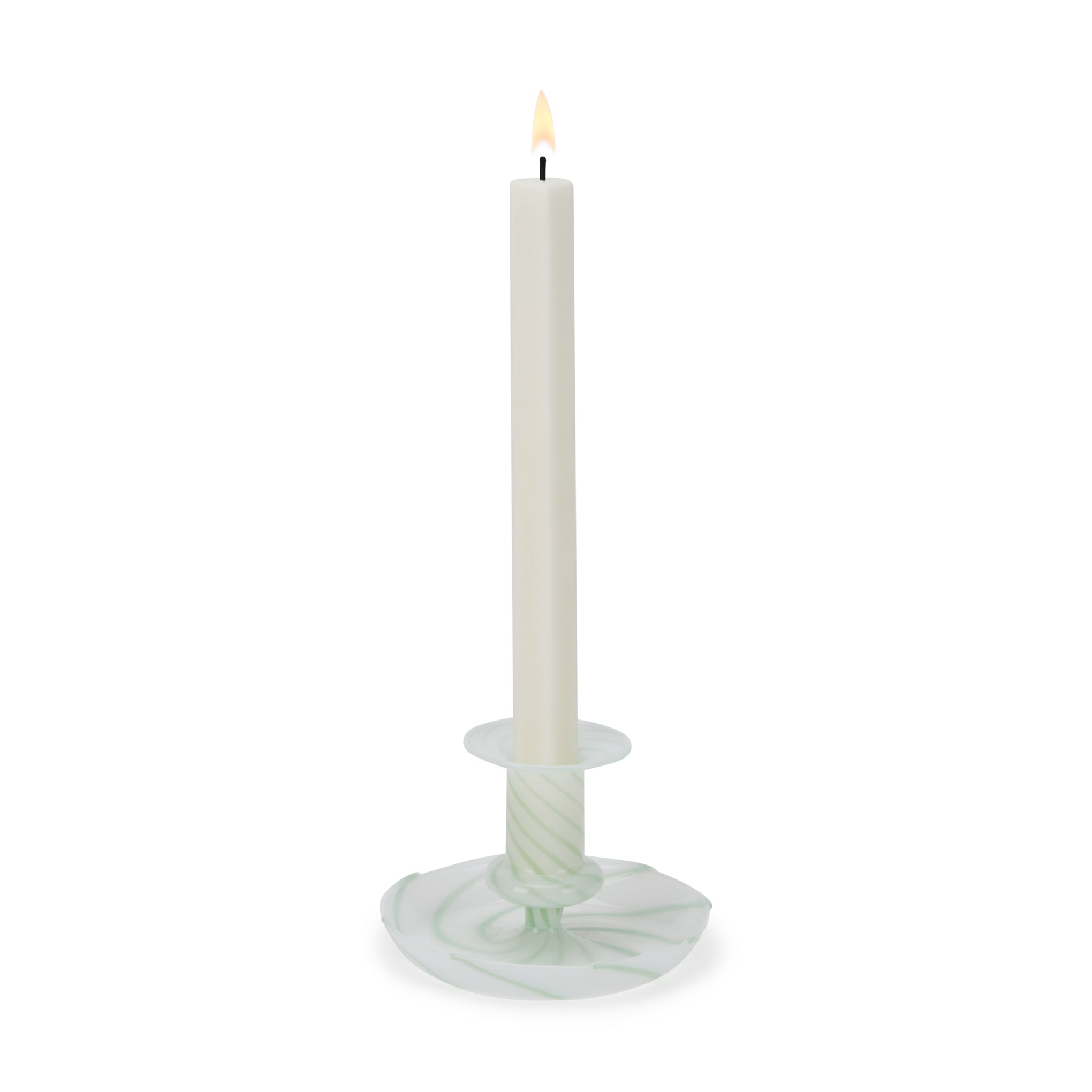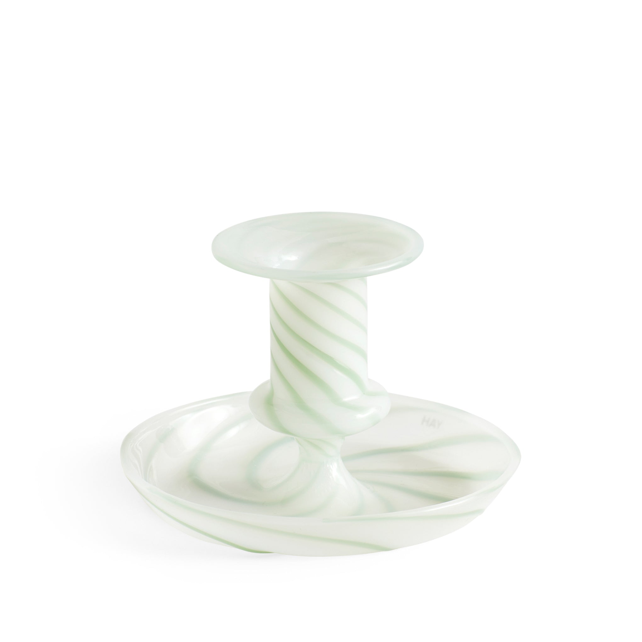 HAY Flare Glass Candle Holder – Milk Stripe Green