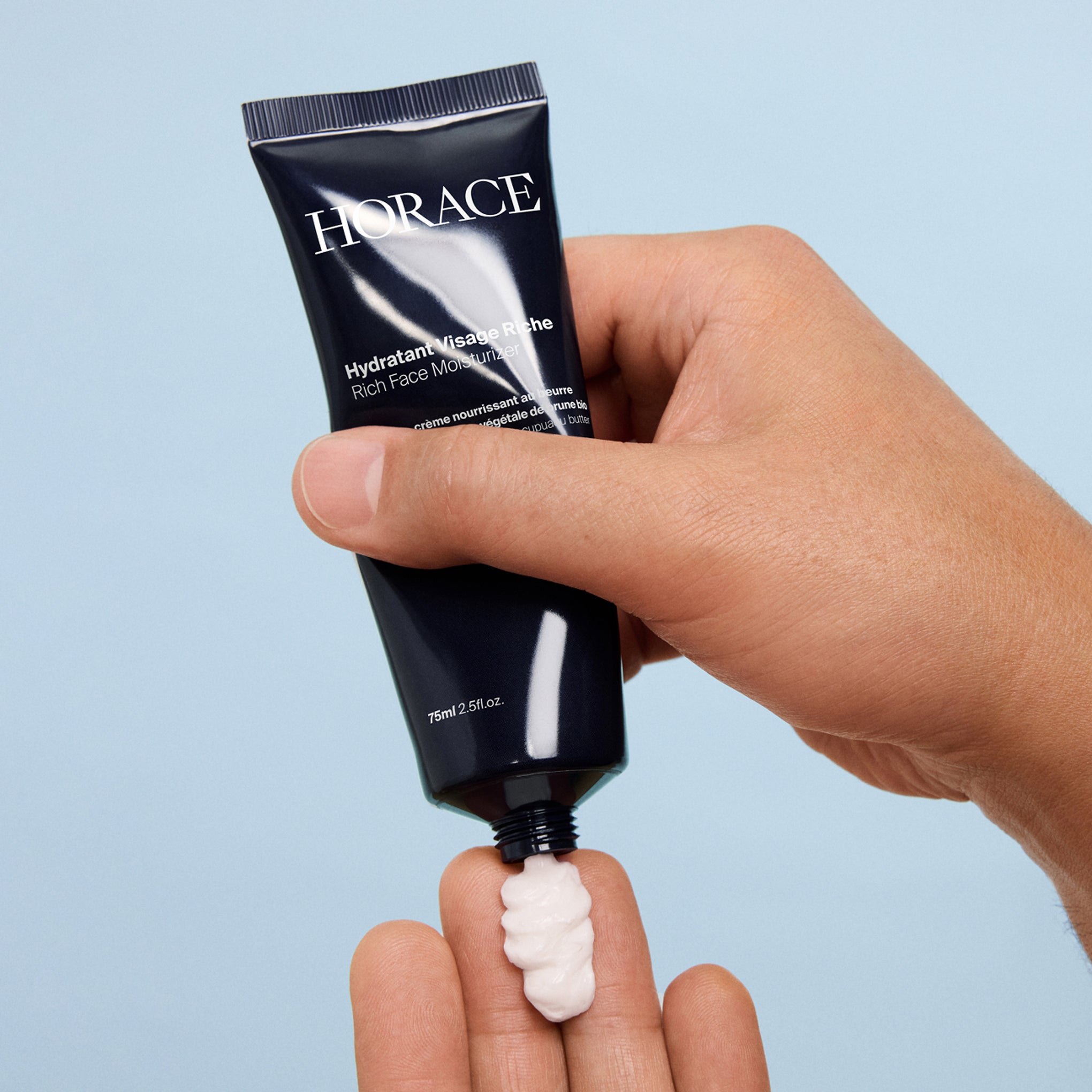 From French skincare line Horace. this Rich Face Moisturizer is made in France from 96.1% ingredients of natural origin. Horace likes to refer to it as a tall glass of water for your skin: It quenches thirst and protects skin through soothing hydration and nourishment leaving skin soft and smooth. Apply it in the morning and/or evening to clean. dry skin.This unscented Rich Face Moisturizer is suitable for all skin types and is silicone-. paraben- and mineral oil-free. 2.54 fl oz.