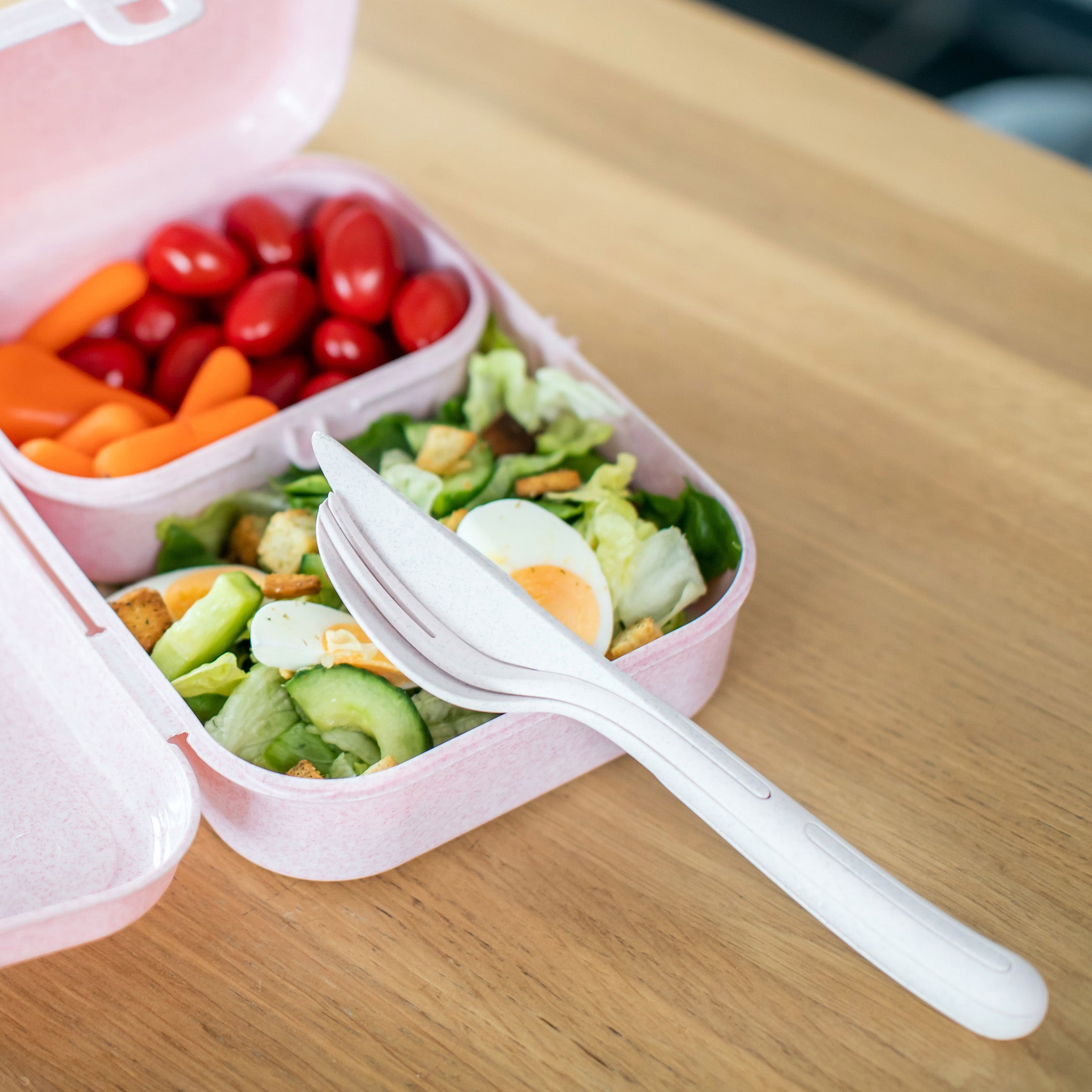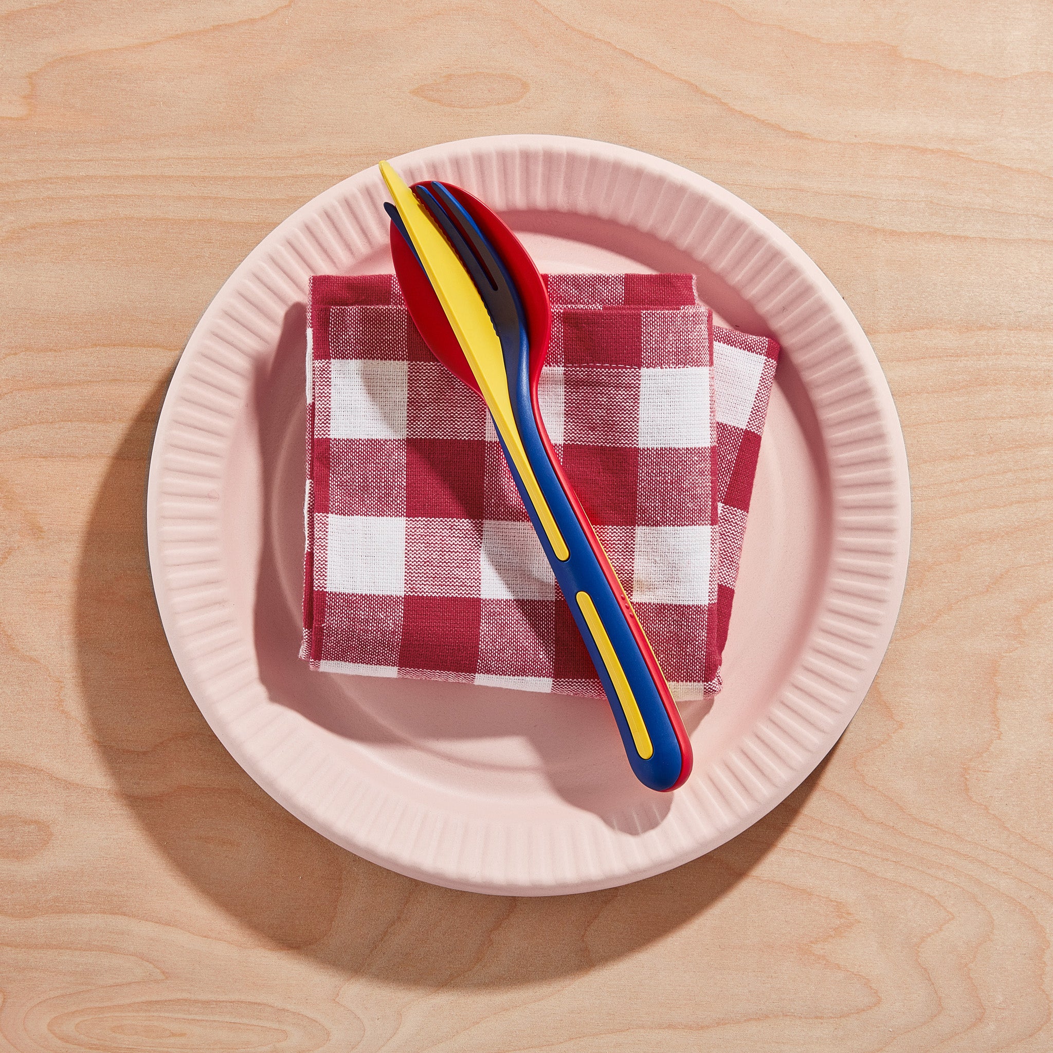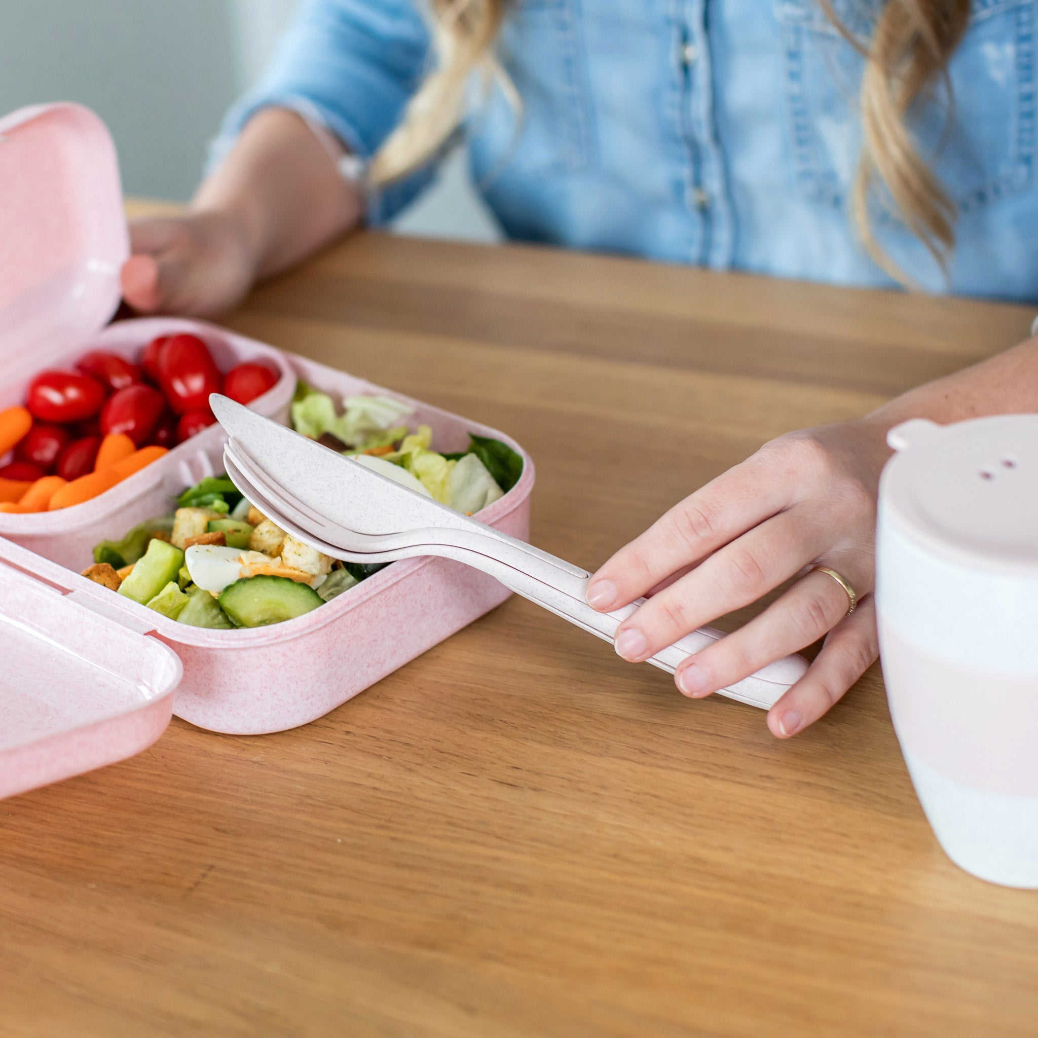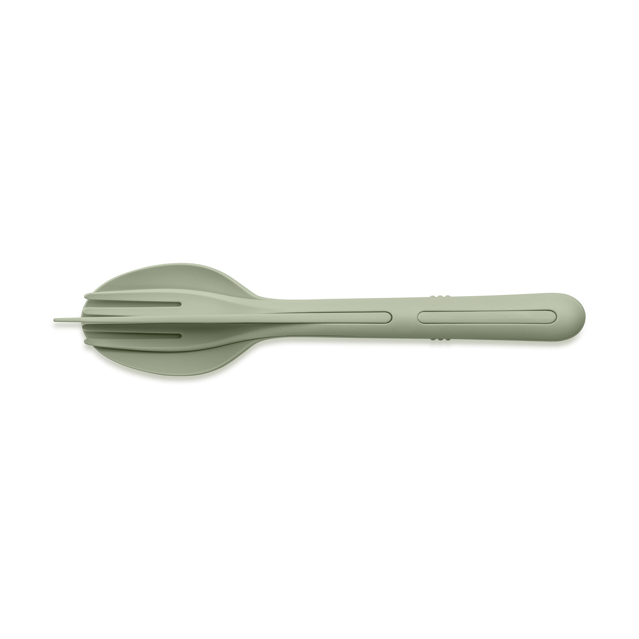 Cleverly designed to fit together in a compact. on-the-go package. this reusable. three-piece Klikk Flatware Set includes a knife. fork and spoon. and is a smart alternative to disposable plastic. Ideal for meals at work or weekend picnics. the 8.75 long Klikk Cutlery Set is made in Germany from 100% recyclable and sustainable thermoplastic. The pieces are dishwasher-safe and heat-resistant to 428??F (220??C).