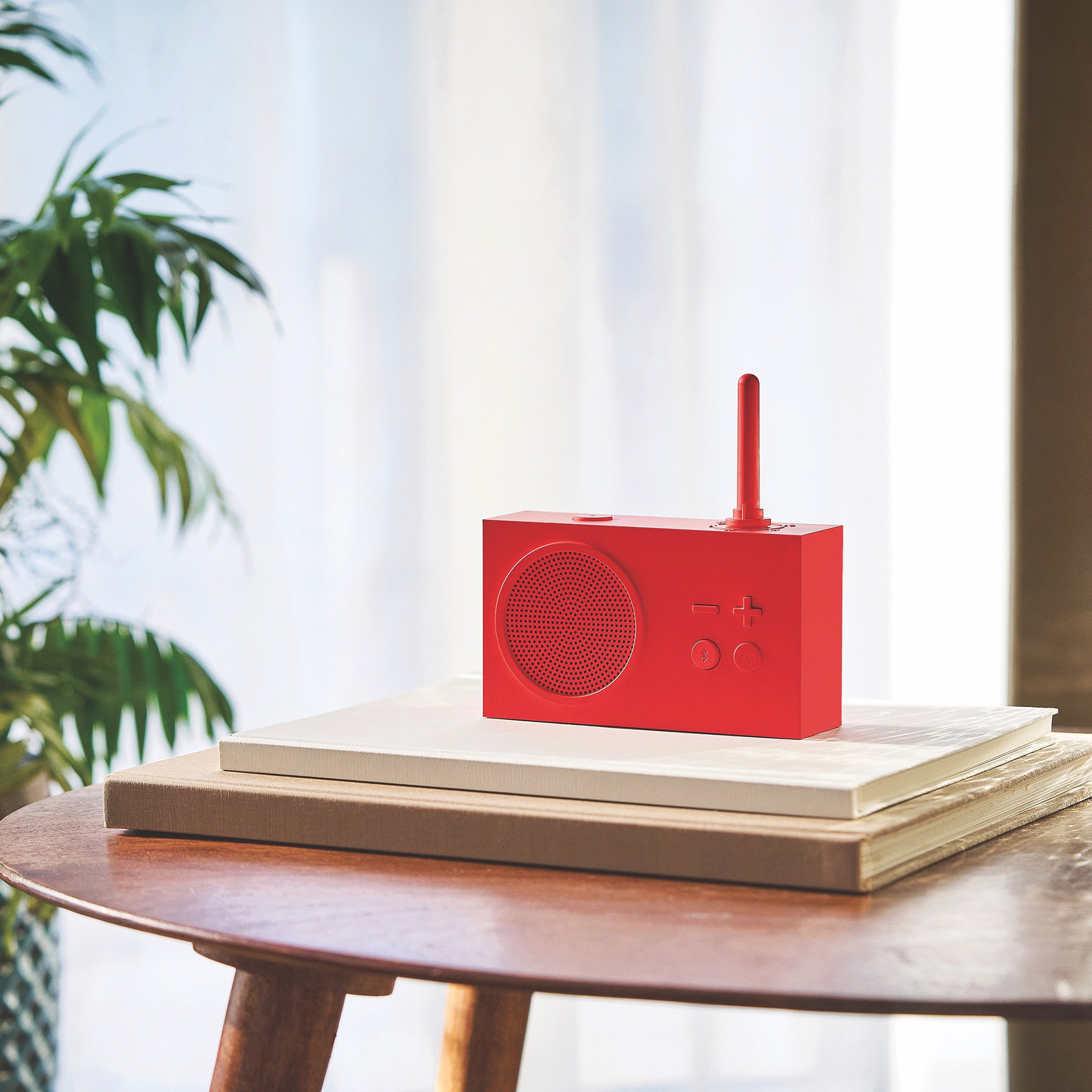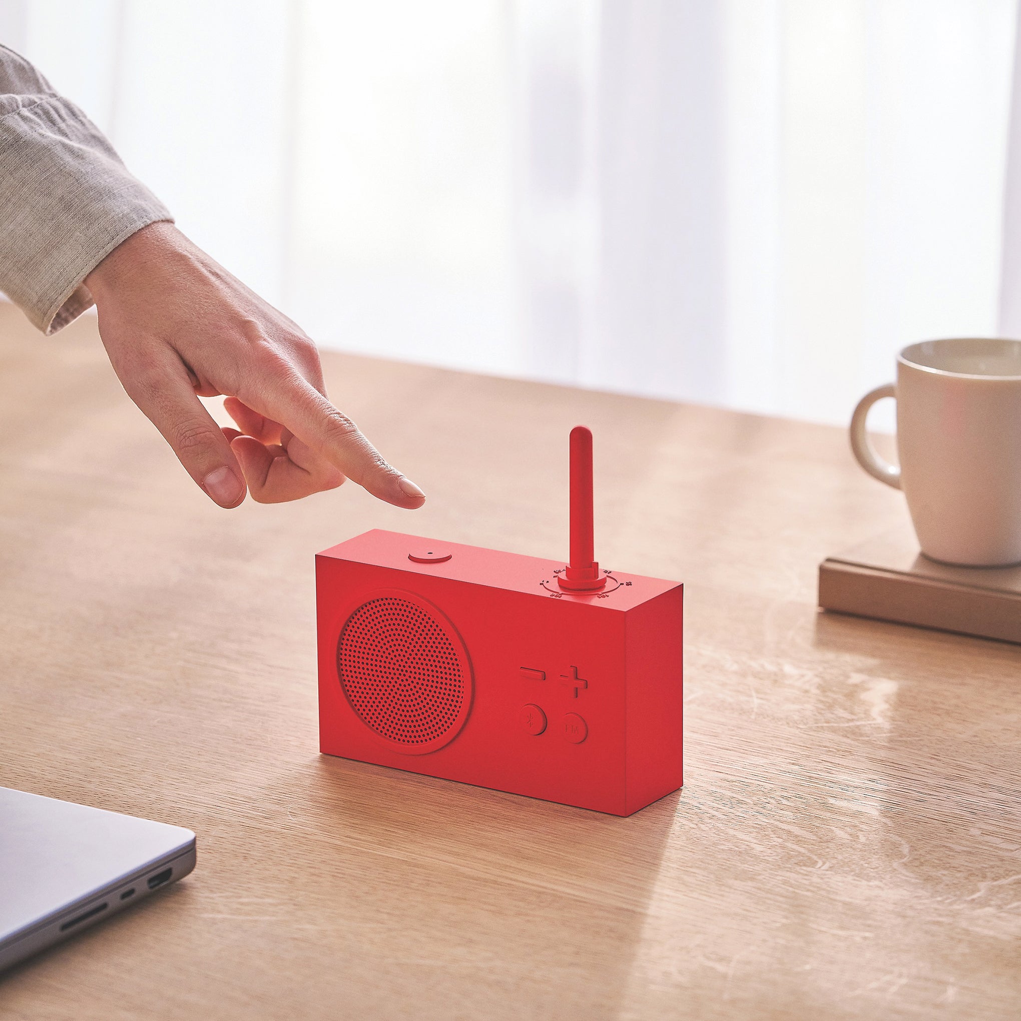 Designed by Marc Berthier in 1997. the Lexon Tykho Radio??a design in MoMA’s collection??is now available in a Bluetooth version. The first design object to appear on the cover of Time magazine. the Tykho Radio is portable. rechargeable and bathroom- and poolside-friendly. thanks to its splash-proof rubber finishing. To choose FM radio channels. manually rotate the antenna. or stream your favorite music via Bluetooth from your smartphone or tablet. Lexon is a manufacturer with work in MoMA’s collection.