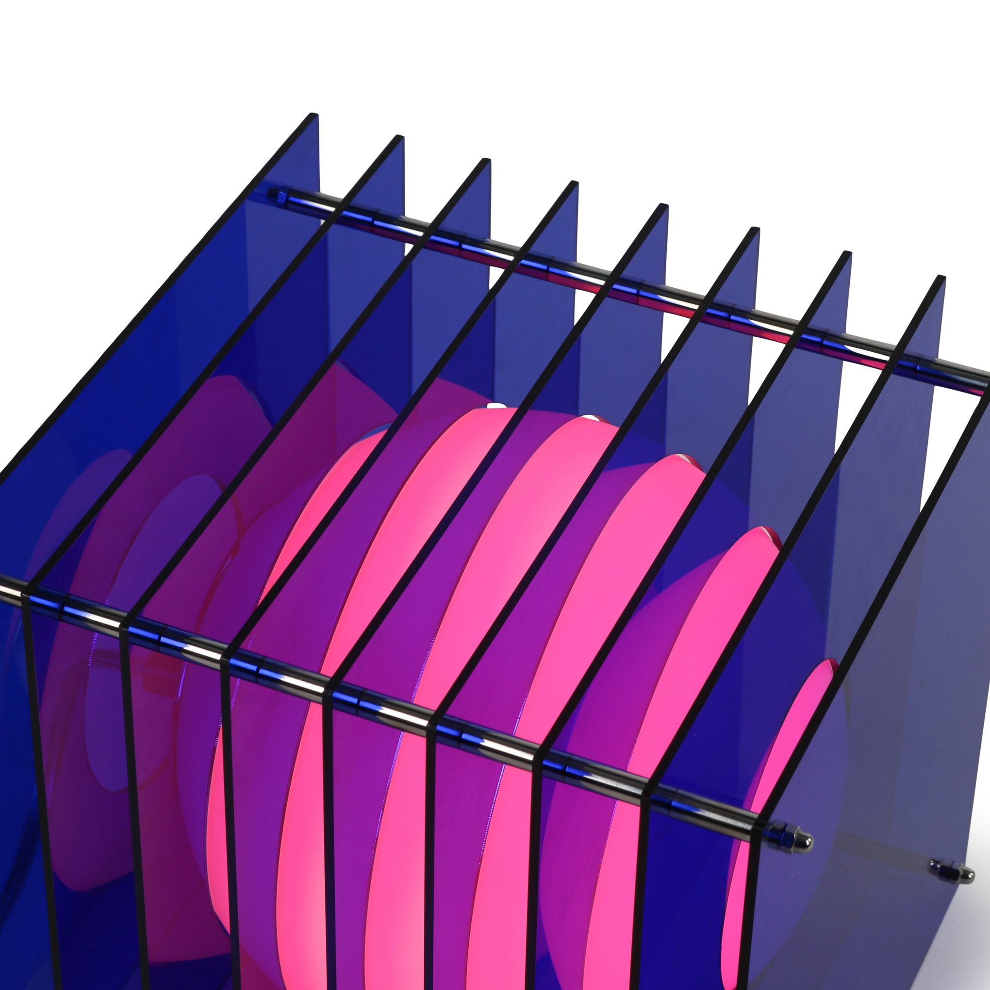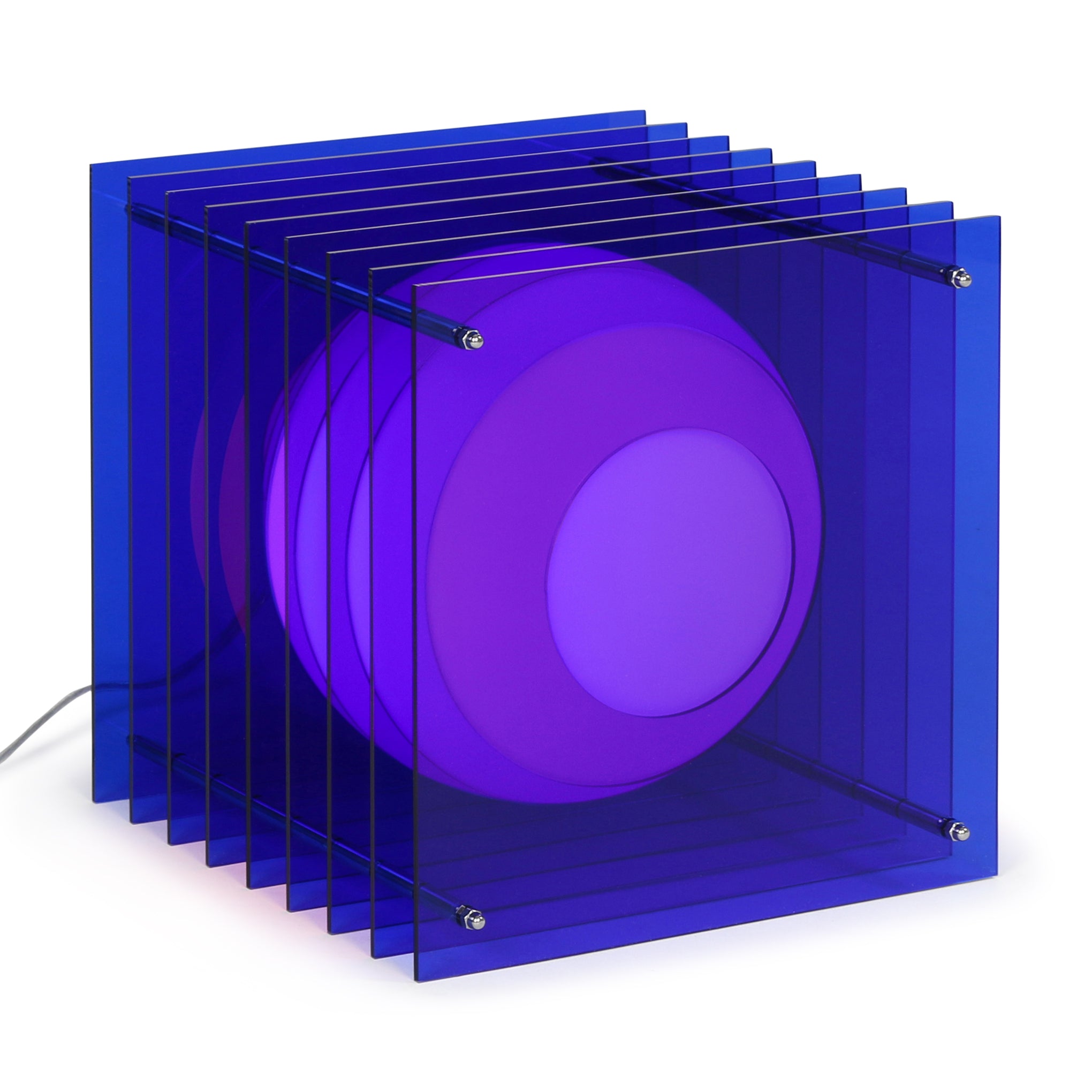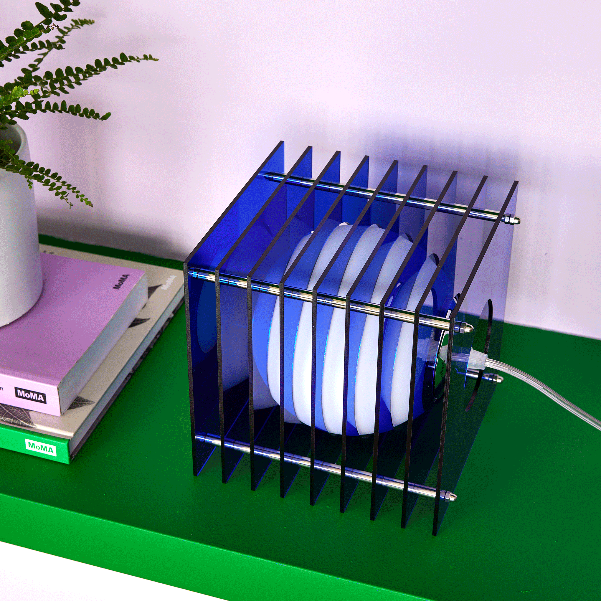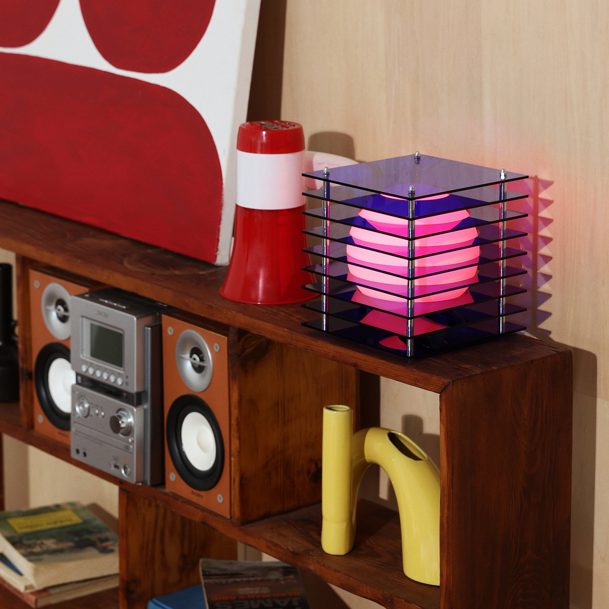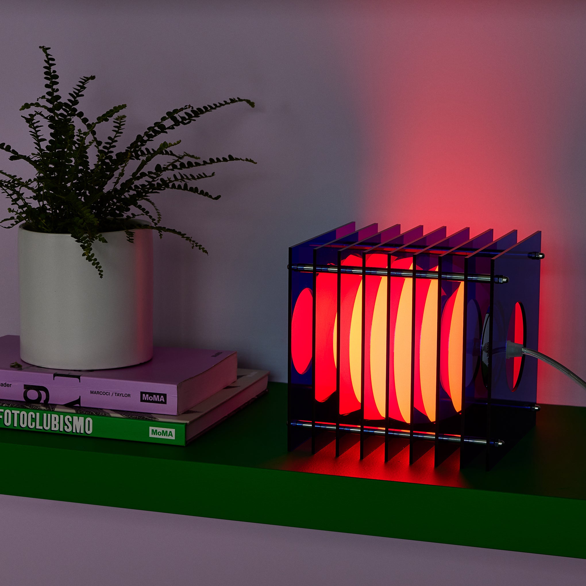 Mesmerizing and futuristic. the Layers Table Lamp brings moody light and color into your space. Composed of nine acrylic sheets and a glass globe shade. the Layers Table Lamp was conceived by Thomas Vincent. creative director and designer for the Vietnam-based brand BằNG. The Layers Table Lamp measures 7h x 7w x 7.7d. Powered by standard plug-in. Requires one E26 G45 LED bulb (included).