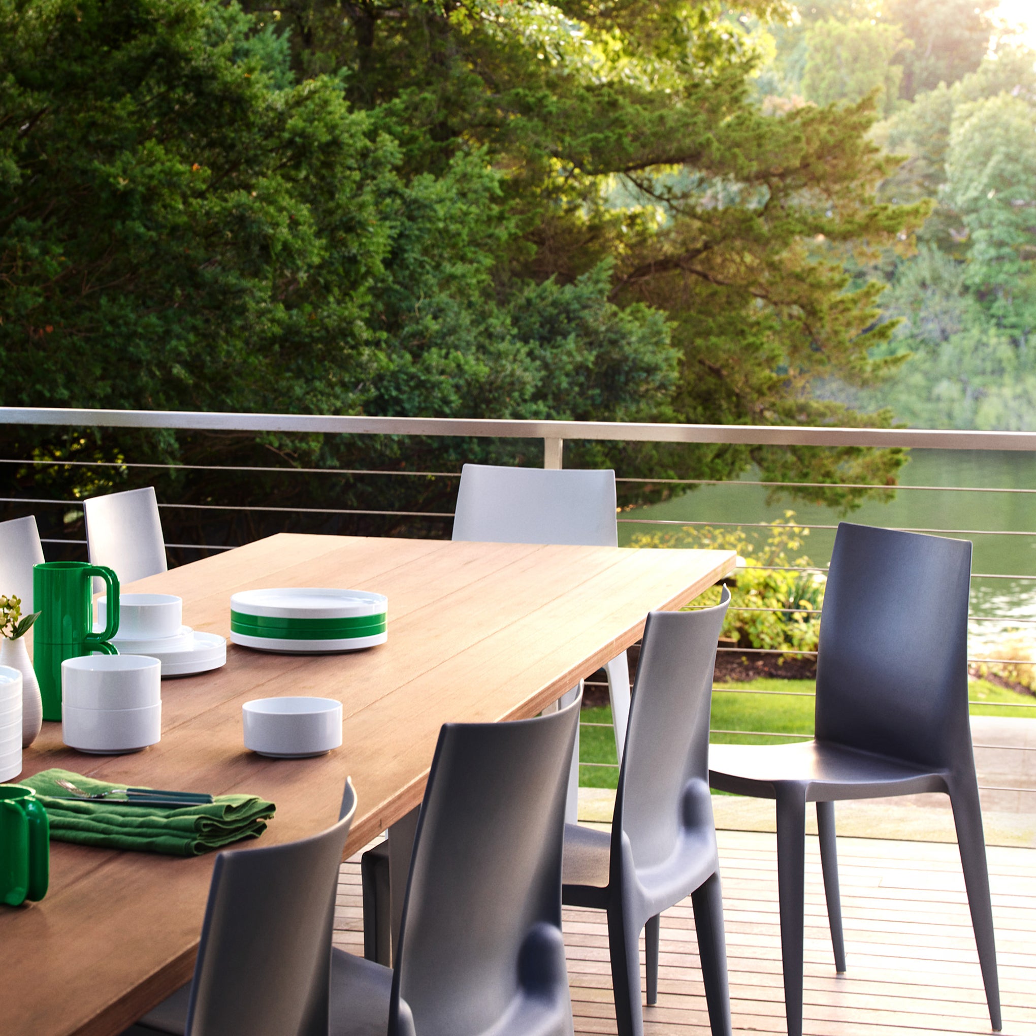 Timelessly modern. this indoor-outdoor chair was conceived in 1998 by Mario Bellini. and is an object in MoMA’s collection. Distinguished by sleek. sculptural lines. the Bellini is exceptionally comfortable. boasting a slightly flexible back. Made in the USA from highly durable and lightweight fiberglass-reinforced polypropylene. the chair—which is offered here in a set of two—is stackable up to six chairs for convenient storage. The chair’s minimalist look allows it to fit seamlessly into your home decor and can be used at your dining table. in the patio and as a convenient seat in any room. The Bellini Stacking Chair is produced by Heller. a manufacturer with work in MoMA’s collection. and each one in this set of two measures 33h x 17.3w x 18d.