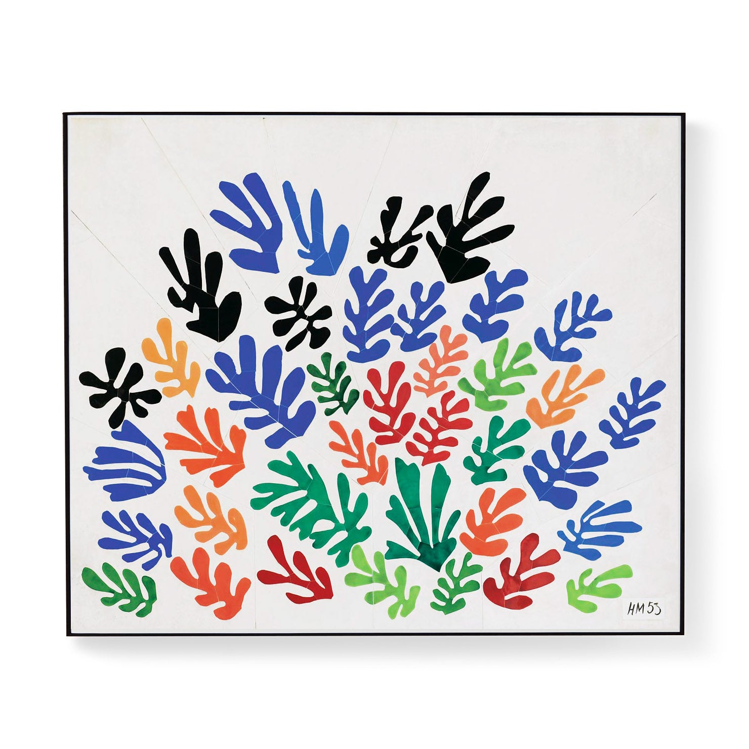 This print features a reproduction of La Gerbe (1953). by Henri Matisse. an artist whose work is represented in MoMA’s collection.? It’s mounted and laminated for protection from dust and UV rays. and floated in a hand-stained black frame made from ash wood grown in sustainable forests.? Hanging kit included.