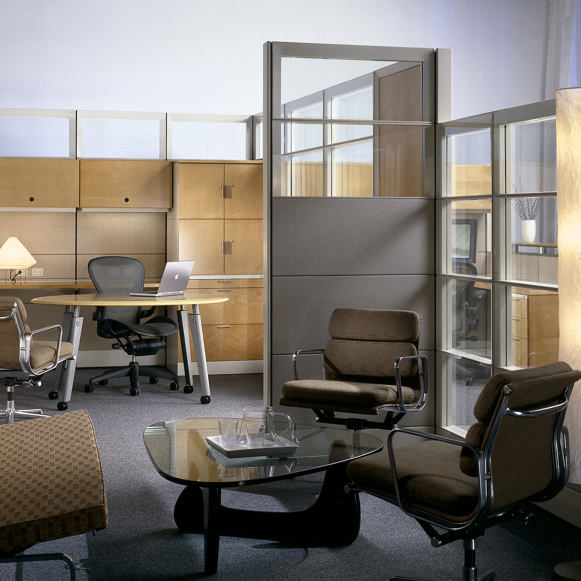 The Noguchi Coffee Table was originally designed in 1939 as a commission from the president of MoMA and is now featured in the Museum’s collection. Noguchi modified the design in 1944 to accompany an article by designer George Nelson. entitled. How to Make a Table. This design reflects the biomorphic imagery of Noguchi’s contemporary sculpture. It consists of just three pieces: a free-form plate-glass top with flat polished edges. and a self-stabilizing tripod made of two interlocking curved legs of solid or ebonized walnut. With its successful balance of sculptural form and everyday function. this piece is one of Isamu Noguchi’s best-known designs. Made by Herman Miller?. Some assembly required.