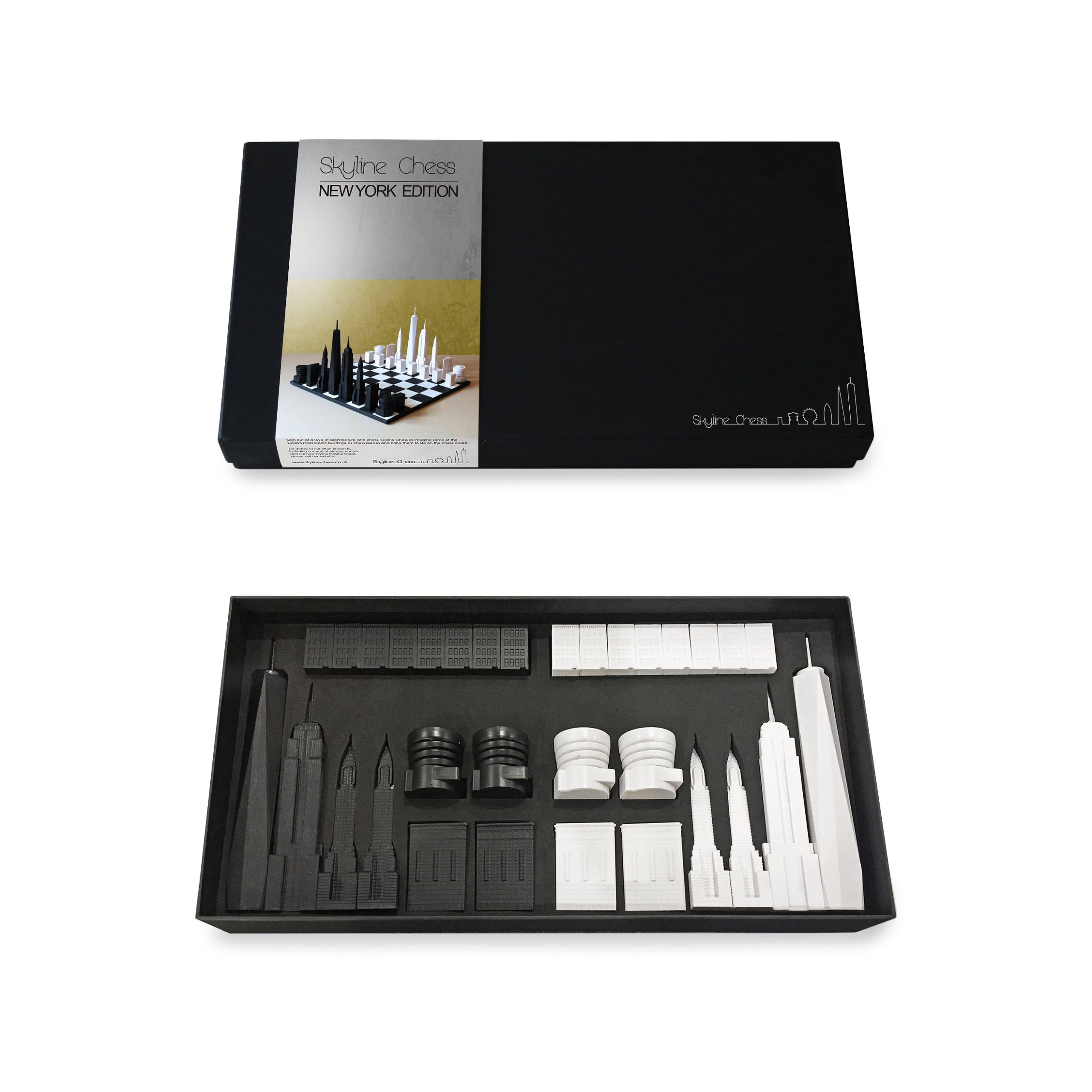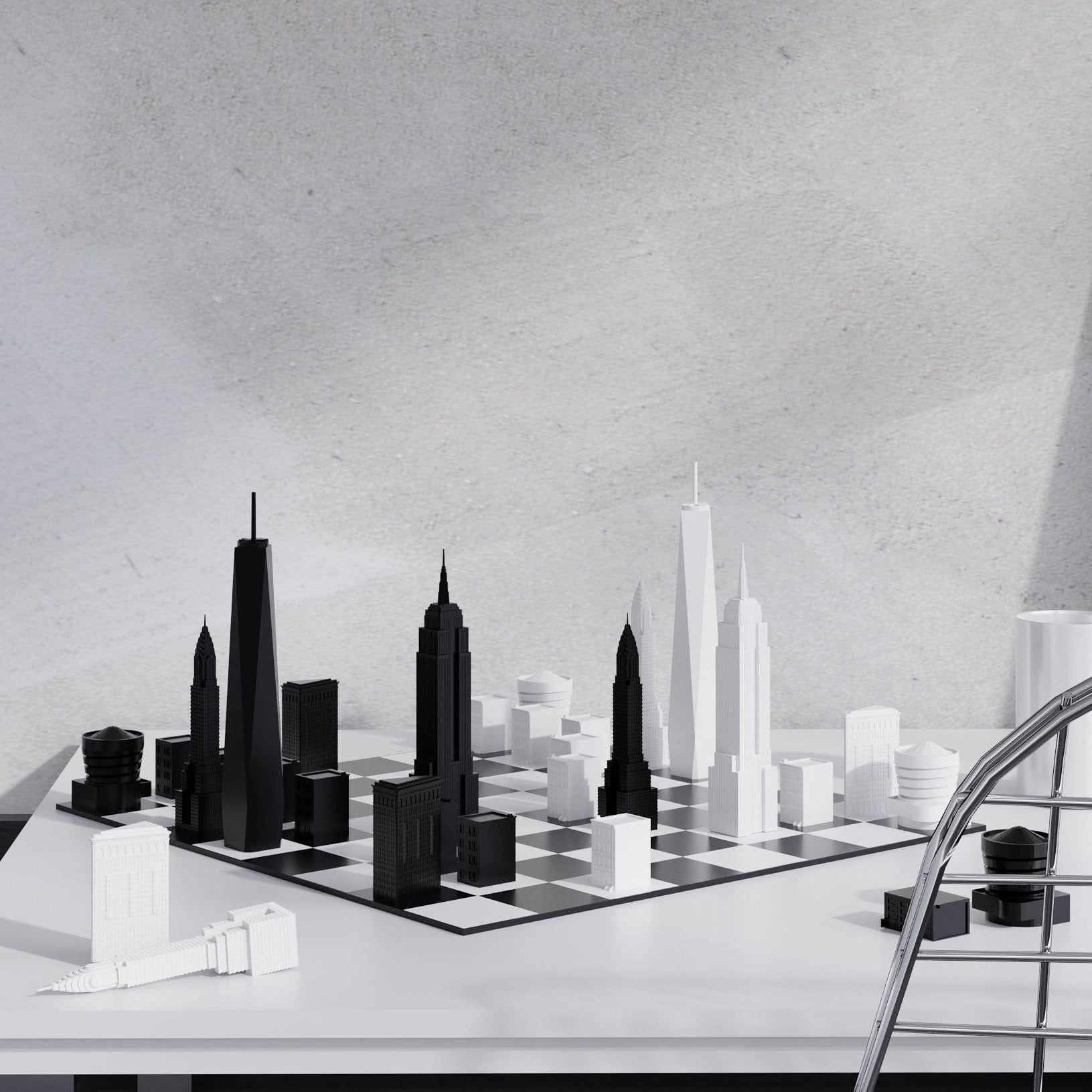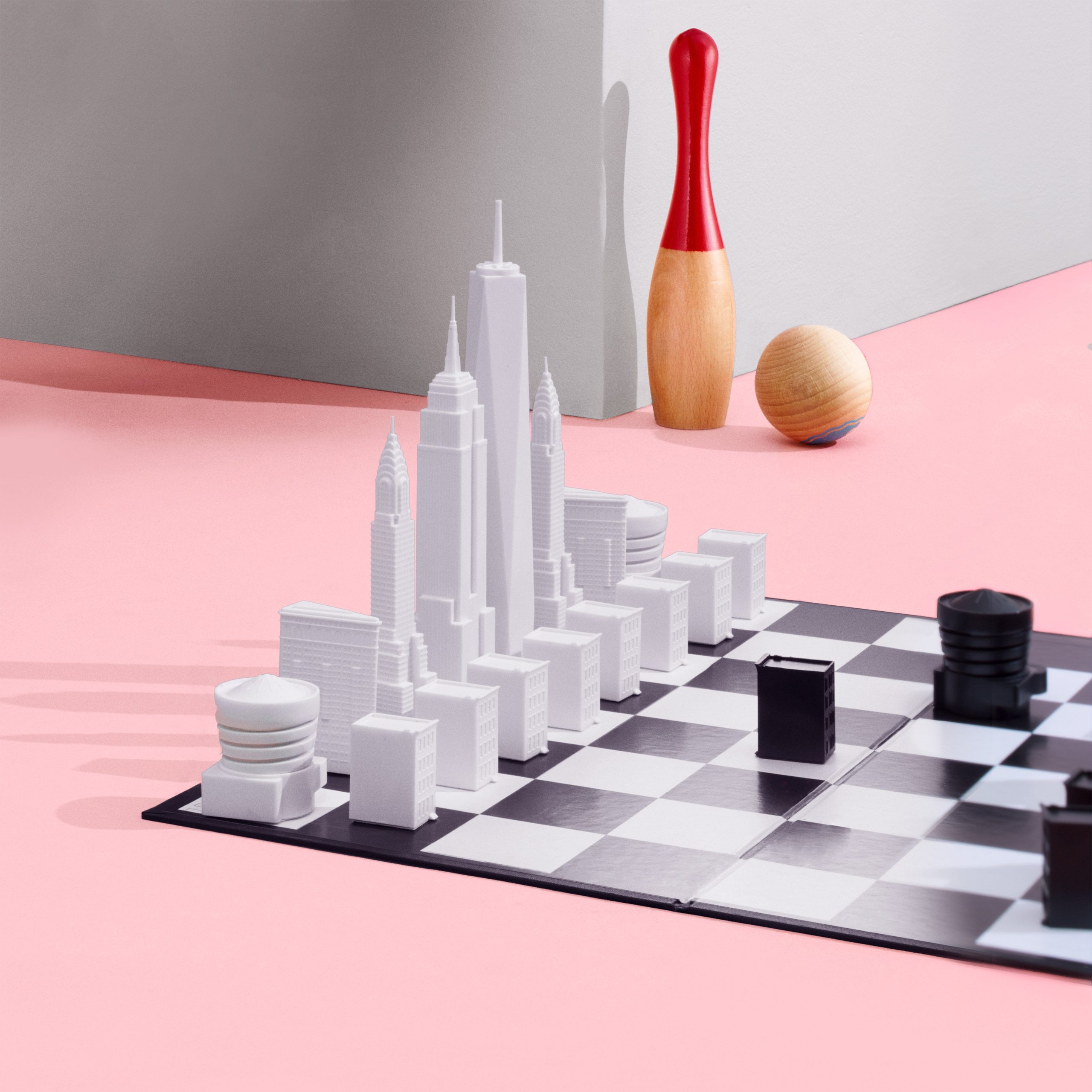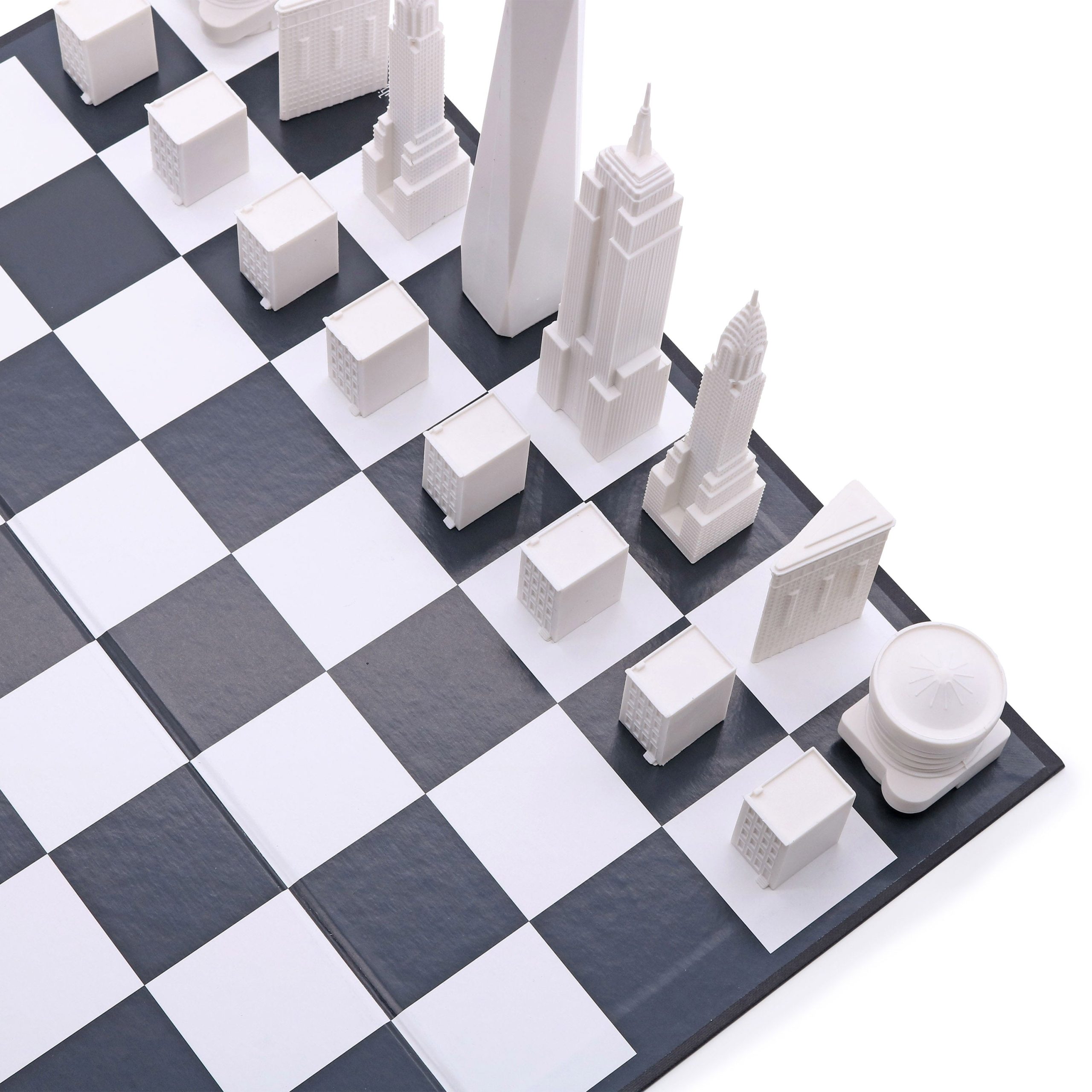 When the Flatiron Building and the Empire State Building have your One World Trade Center in checkmate. you know your chess game has been taken to new heights. Celebrate New York’s diverse architecture with this handsome chess set. Includes 32 double-weighted acrylic pieces with soft felt bases. and a folding board.