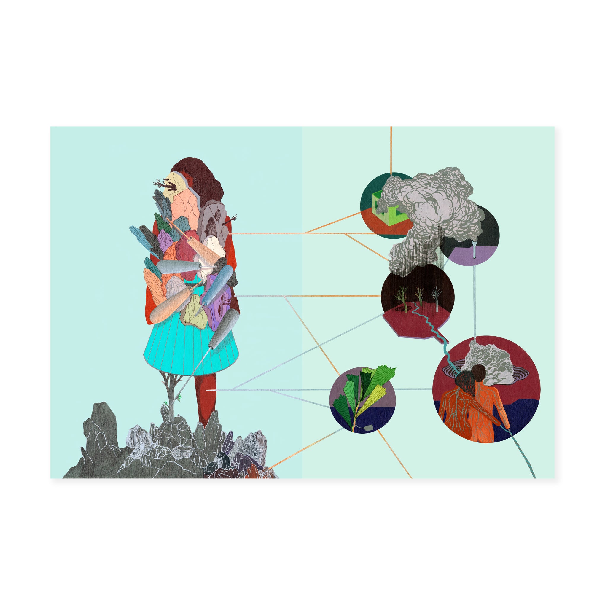 Delving into the artist’s ritualistic practice of mind-mapping. readers are invited to explore the cultural and historical references that inflect Nkanga’s interest in legacies of empire. the earth’s natural resources. the weight of memory and the human imagination’s possibility to conjure social change. The title. Stitched Dreams. comes from the name of her first drawing. made in 1994. Otobong Nkanga (born 1974) grew up in Lagos and Paris and is currently based in Antwerp. She studied fine and performing arts at Obafemi Awolowo University in Ife-Ife. the École nationale supérieure des Beaux-Arts in Paris and DasArts in Amsterdam. Nkanga received the Special Mention Award at the 58th Venice Biennale.