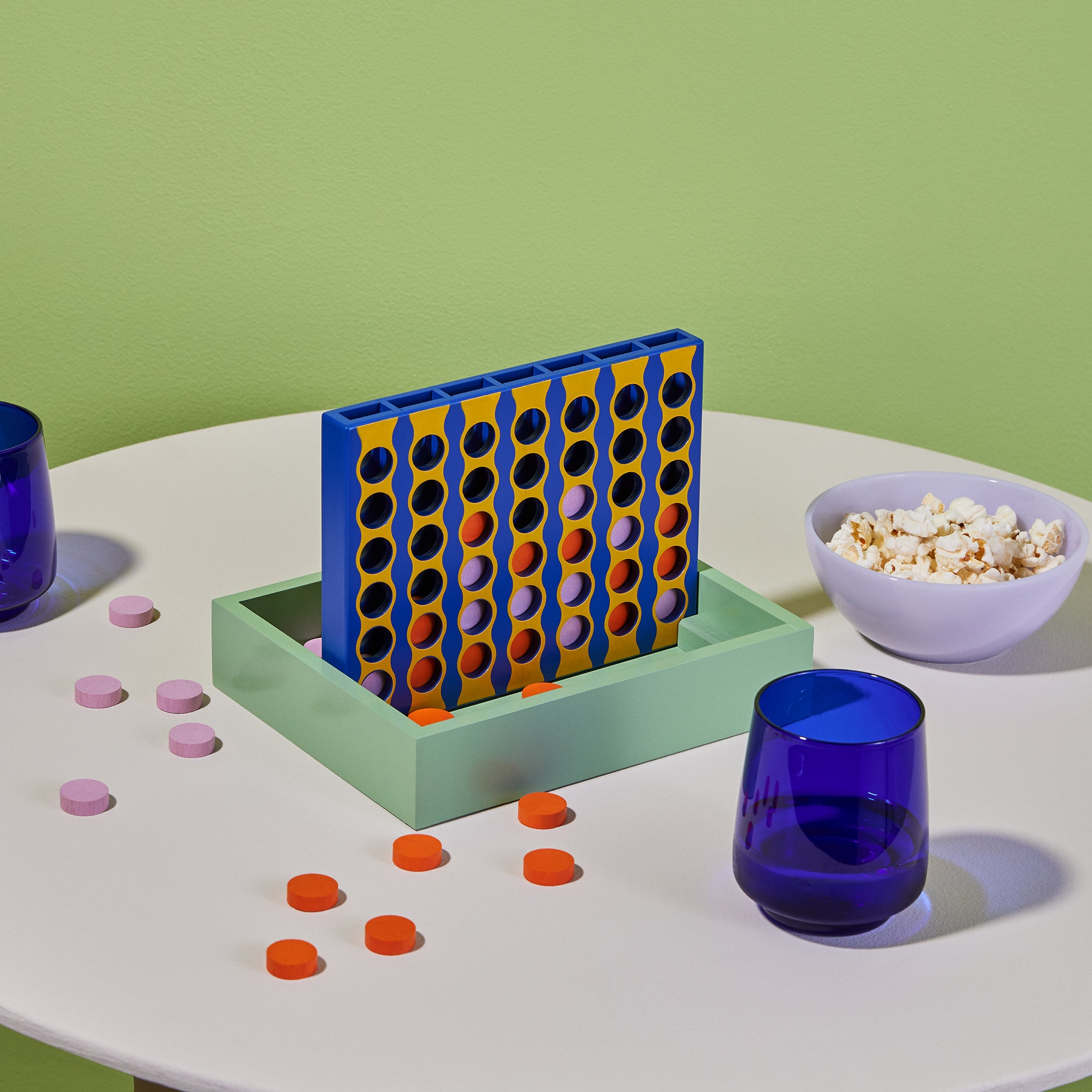 MoMA Exclusive: This artful version of the classic four-in-a-row game is distinguished by an unexpected color palette and painted-wood design. Made for two players. the game involves dropping your checkers into the grid until one of the players creates four in a row with their color.?