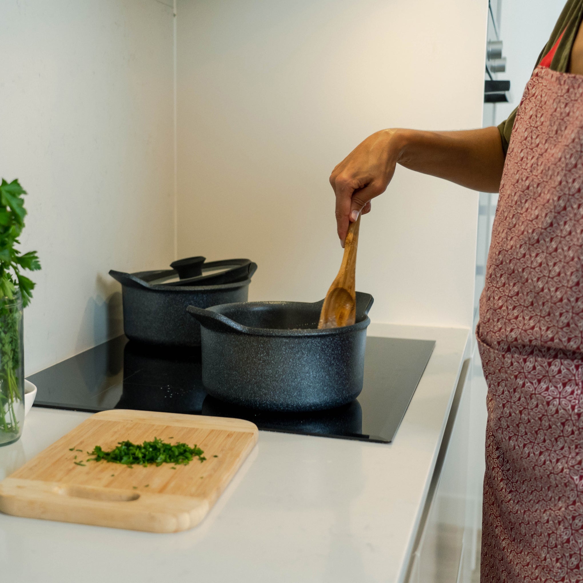MoMA Exclusive: Chic. versatile and innovative: Pirotech Cookware by Panboo is the world’s only cookware that can be used on all heat sources. from induction to microwave. This cookware set is crafted in Italy from Panboo’s proprietary and patented material. Pirotech: Plant-based carbon graphite with a nonstick ceramic coating. This revolutionary. lightweight material allows for rapid heat diffusion. with no thermal shock. from oven to freezer. Pirotech Cookware can be used on all stove tops??gas. electric and induction??as well as in the oven and microwave. The cookware includes a grill that doubles as a lid. Pirotech Cookware is 100% recyclable. Maximum temperature 572?C608??F. Dishwasher-safe.