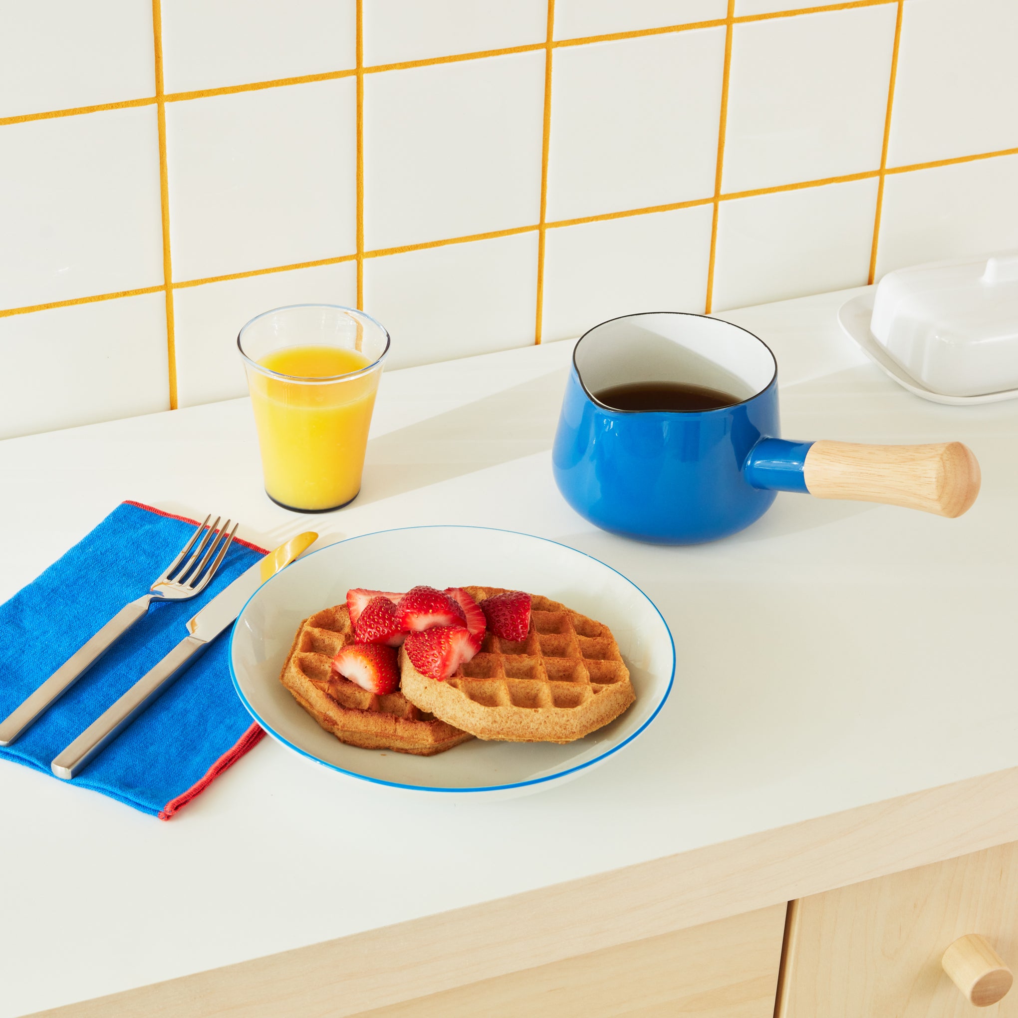 MoMA Exclusive: Experience the joy of cooking with the Porcelain Enamel Milk Pan. This small and easy-to-use pan brings a pop of personality to your cooking routine. Crafted from low carbon steel and coated with enamel. the pan is designed for durability and long-lasting performance. The thoughtfully crafted wooden handle provides a comfortable grip. making it a pleasure to use. too. Made from a solid 1 mm thick enameled steel plate. it strikes the perfect balance between thermal efficiency. robustness and lightweight convenience. Safe for use on induction. gas. and electric stovetops. Hand wash only. The Porcelain Enamel Milk Pan measures 4h x 9.25w x 4.7d. Holds 25oz.