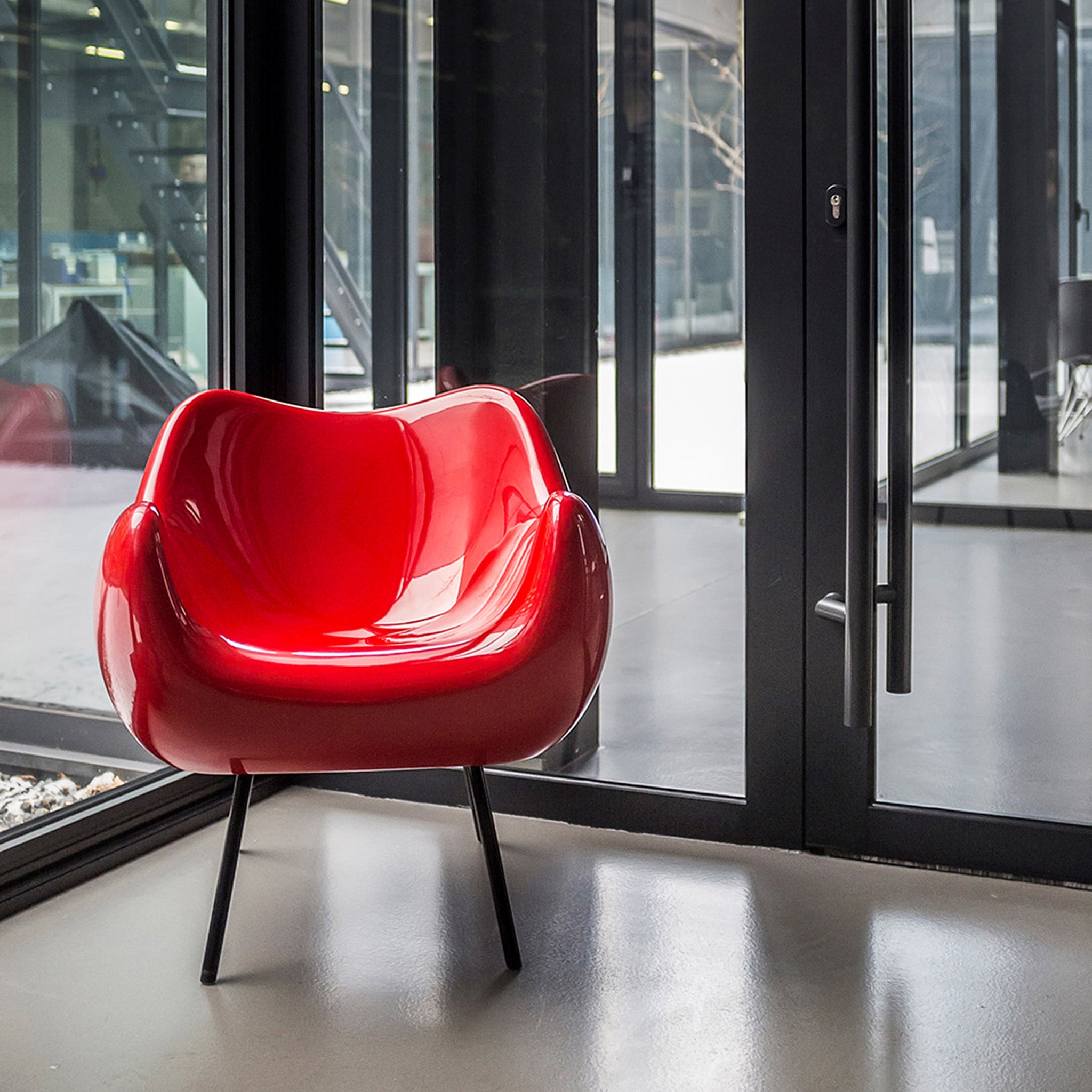 MoMA Exclusive: An Eastern European design icon from 1958. the RM58 Classic Chair was revolutionary for being one of the earliest examples of polyester-glass laminate furniture. In its original design by Roman Modzelewski. the RM58 is also manufactured exactly as the original—manually at a shipyard using yacht and boat production technologies. It’s sealed with a synthetic colored resin that guarantees extended longevity. Never serially produced until now. the RM58 is handmade in Poland from the original material. The RM58 Classic Chair is a comfortable lounge chair for your living space or office which doubles as a show-stopping sculpture. The RM58 Classic Chair comes in tomato red and has a 310lb weight limit.