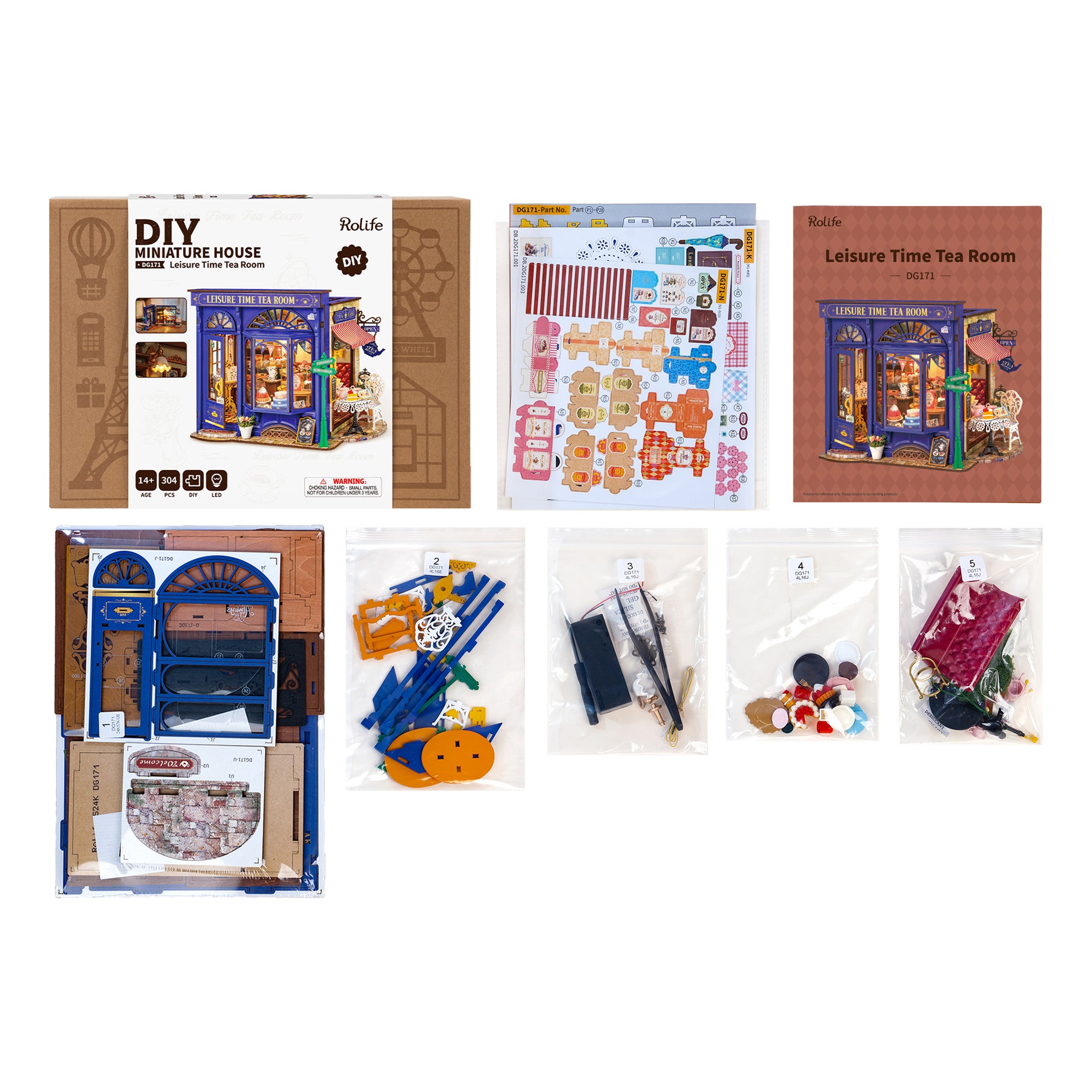 This DIY Miniature Kit invites you to build a structure that condenses a real-life scene into a small. detailed model. The kit includes over 300 pieces that allow you to create tiny objects. Plus. an LED light lets you illuminate your creation when you’re done. (Requires two lithium button-cell batteries. not included). Kit includes tools and instructions. Assembly time: 4–6 hours. For ages 14+. Assembled: 7.1h x 9.45w x 6.1d.